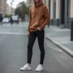 Choose jeans that fit you perfectly – and I mean perfectly. Whether you prefer skinny, straight, or relaxed fit, the key is ensuring they’re not too long or too short. Cuff them once if needed. Your grey hoodie should complement the jeans’ wash, so if you’re wearing light jeans, go for a darker grey hoodie and vice versa.